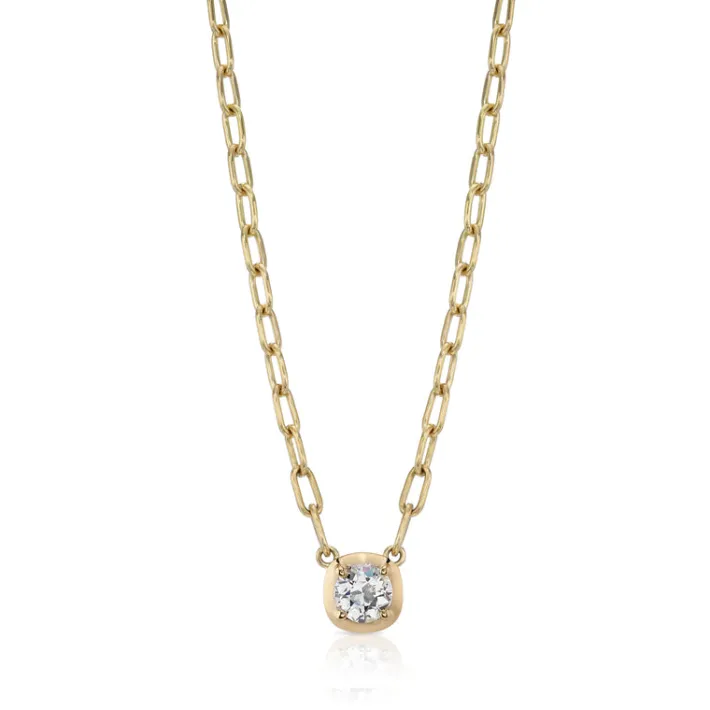 0.54ct E/SI2 GIA certified old European cut diamond prong set on our handcrafted 18K yellow gold Bond chain.