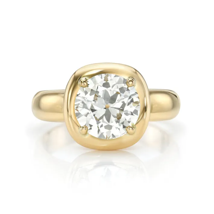 2.00ct N/VS2 GIA certified old European cut diamond prong set in a handcrafted 18K yellow gold mounting.