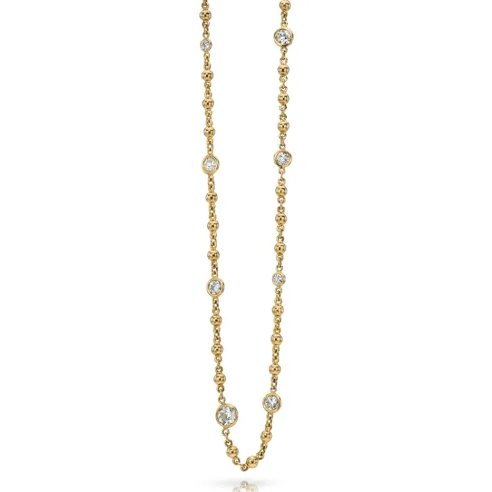 Approximately 4.00ctw H-M/VS-SI old European and antique old mine cut diamonds set on our handcrafted 18K yellow gold Rosary chain.