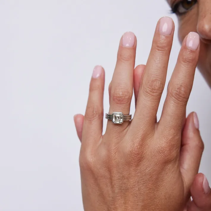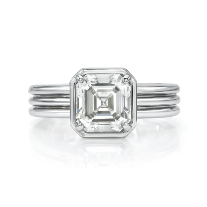 2.14ct K/VVS2 GIA certified Asscher cut diamond prong set in a handcrafted platinum mounting.