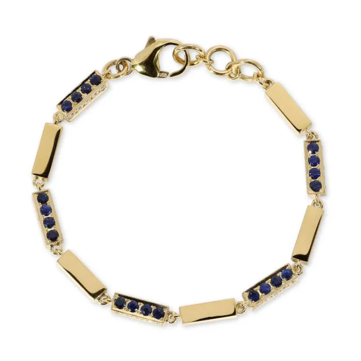 Approximately 1.25ctw G-H/VS old European cut diamonds with 2.75ctw round cut color gemstones set on a handcrafted 18K yellow gold full bar bracelet.