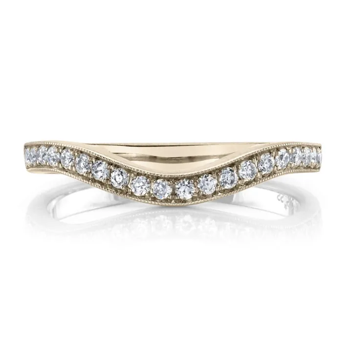 Approximately 0.30ctw G-H/VS old European cut diamonds pavé set in a handcrafted 2mm half-eternity band.