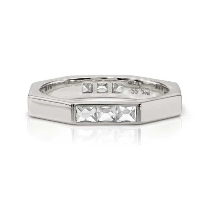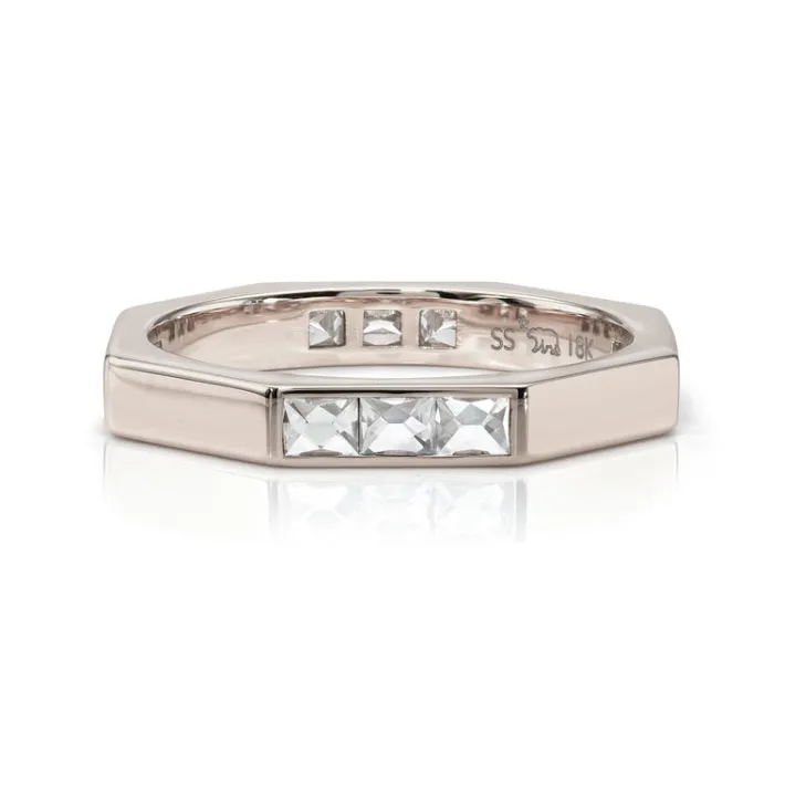 Approximately 0.75ctw G-H/VS French cut diamonds channel set in a handcrafted sectional geometric band.