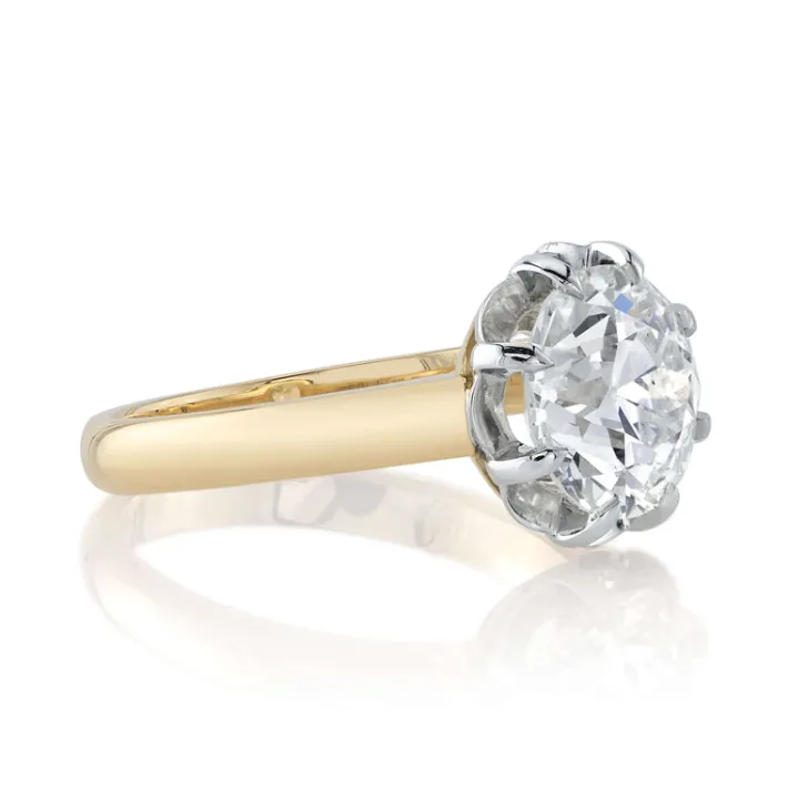 2.63ct J/SI1 GIA certified old European cut diamond set in a handcrafted 18K yellow gold and platinum mounting.