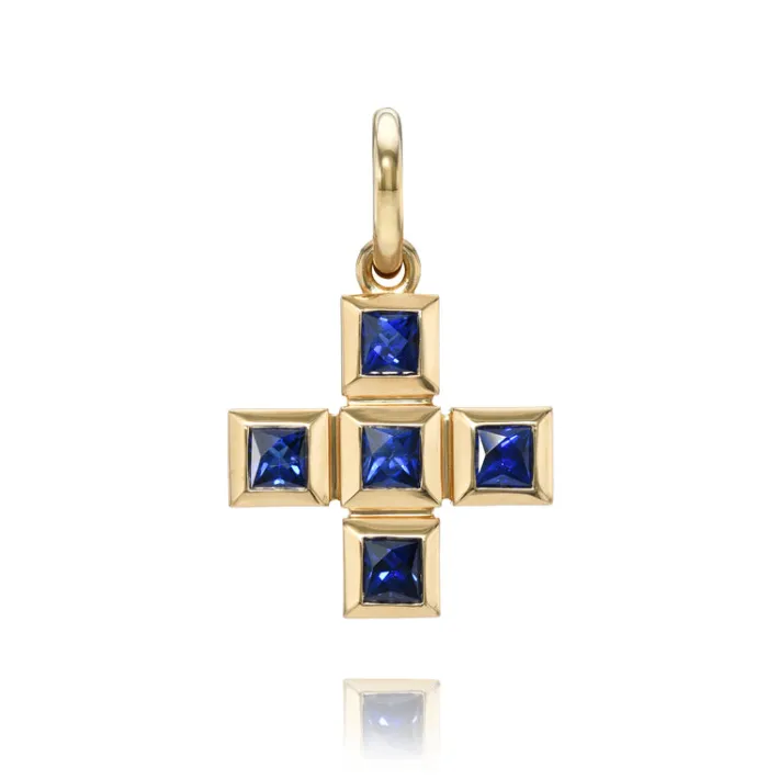 Approximately 1.20ctw-1.40ctw French cut gemstones bezel set in a handcrafted 18K yellow gold cross pendant.Price does n…