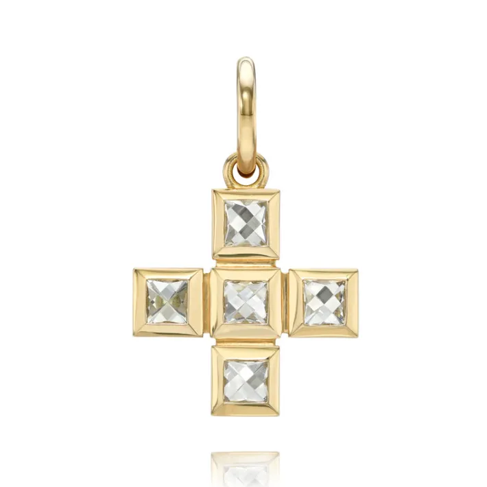Approximately 1.05-1.10ctw G-H/VS-SI French cut diamonds bezel set in a handcrafted cross pendant.Price does not include…