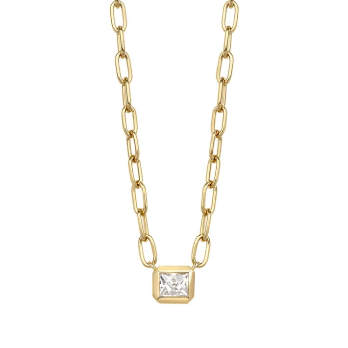 0.92ct F/VS2 GIA certified French cut diamond bezel set on our handcrafted 18K yellow gold Bond chain.