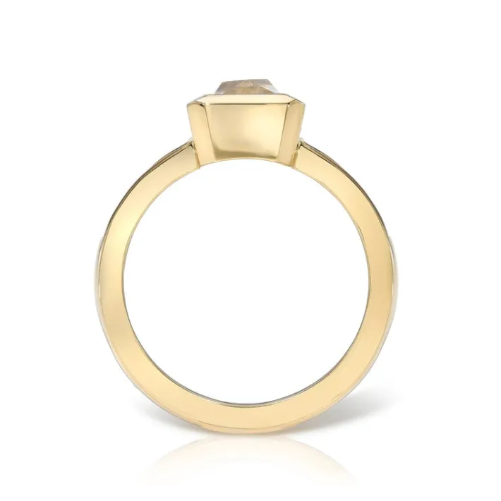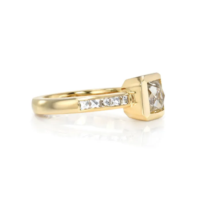 1.24ct G/I1 GIA certified French cut diamond with 0.25ctw French cut accent diamonds set in a handcrafted 18K yellow gold mounting.