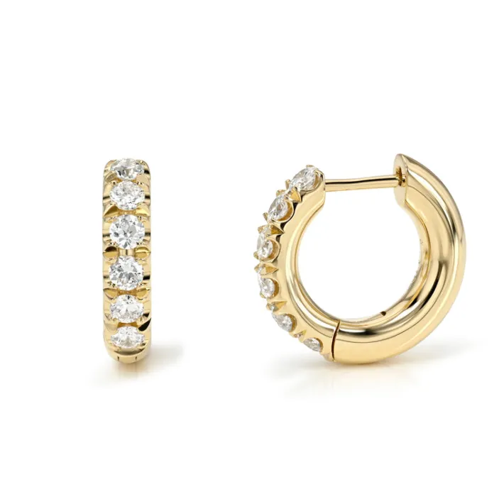 Approximately 0.50ctw G-H/VS old European cut diamonds pavé set in handcrafted 18K yellow gold huggie earrings.
