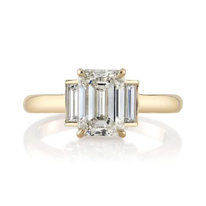 1.72ct M/VVS1 GIA certified emerald cut diamond with 0.25ctw baguette cut accent diamonds set in a handcrafted 18K yello…