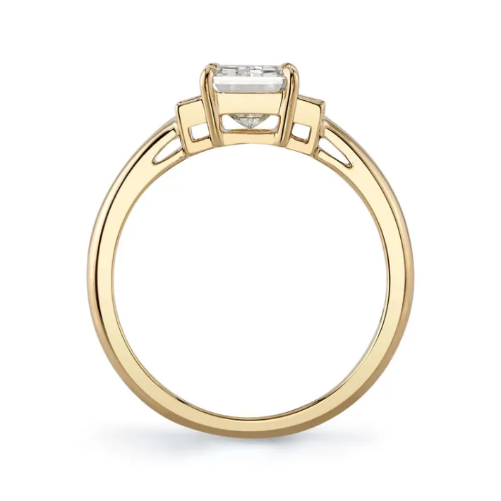 1.72ct M/VVS1 GIA certified emerald cut diamond with 0.25ctw baguette cut accent diamonds set in a handcrafted 18K yellow gold mounting.