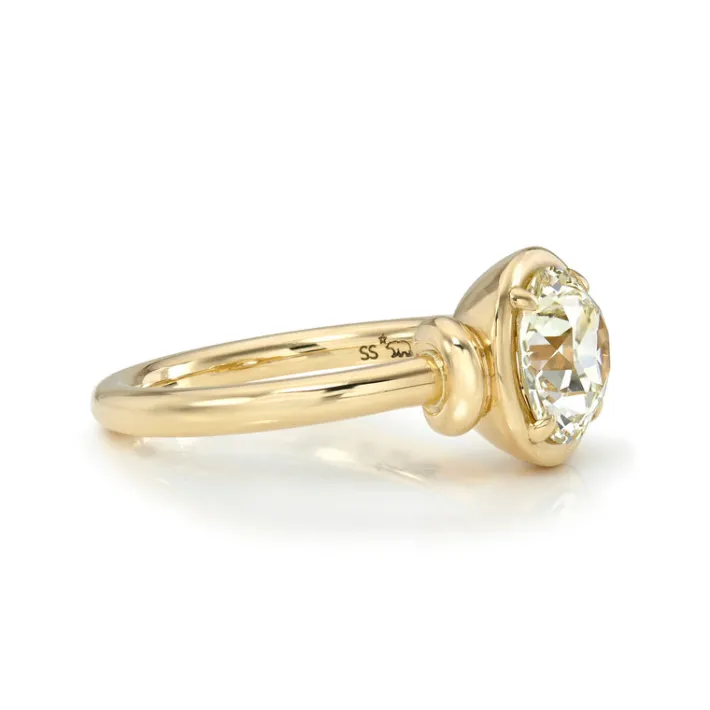 1.80ct L/SI2 GIA certified old European cut diamond prong set in a handcrafted 18K yellow gold mounting.