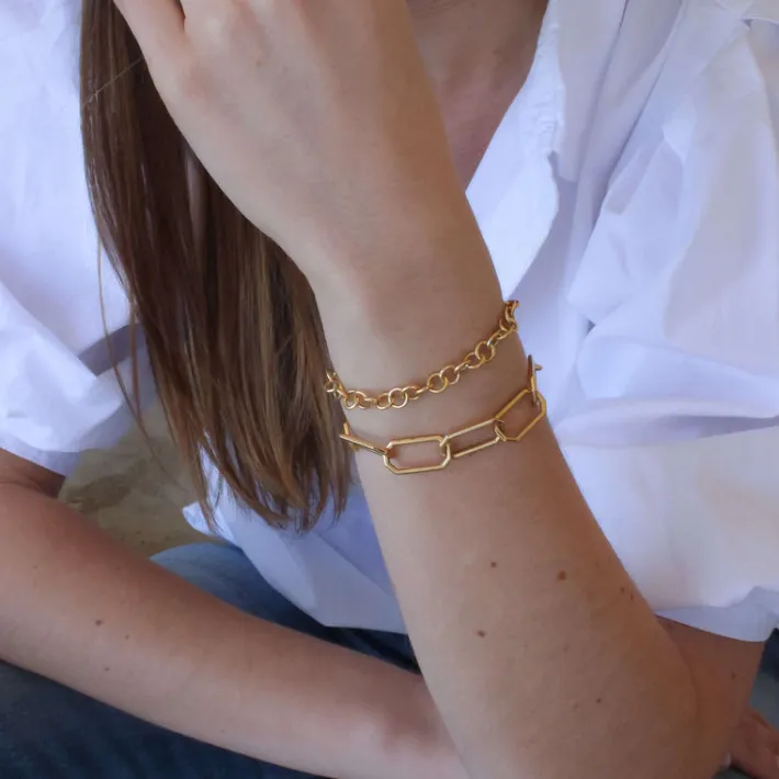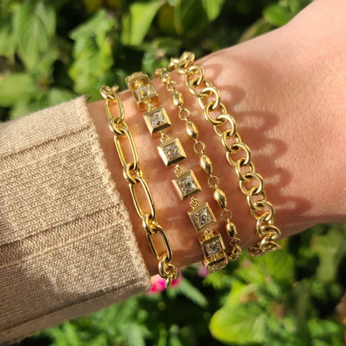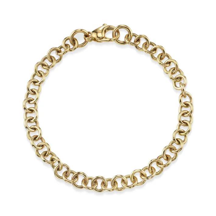 Handcrafted 18K yellow gold small link bracelet. Charms sold separately.