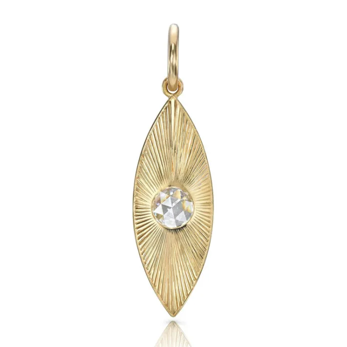 0.86ct I/VS2 GIA certified round rose cut diamond bezel set in a handcrafted 18K yellow gold marquise shaped pendant.Pri…