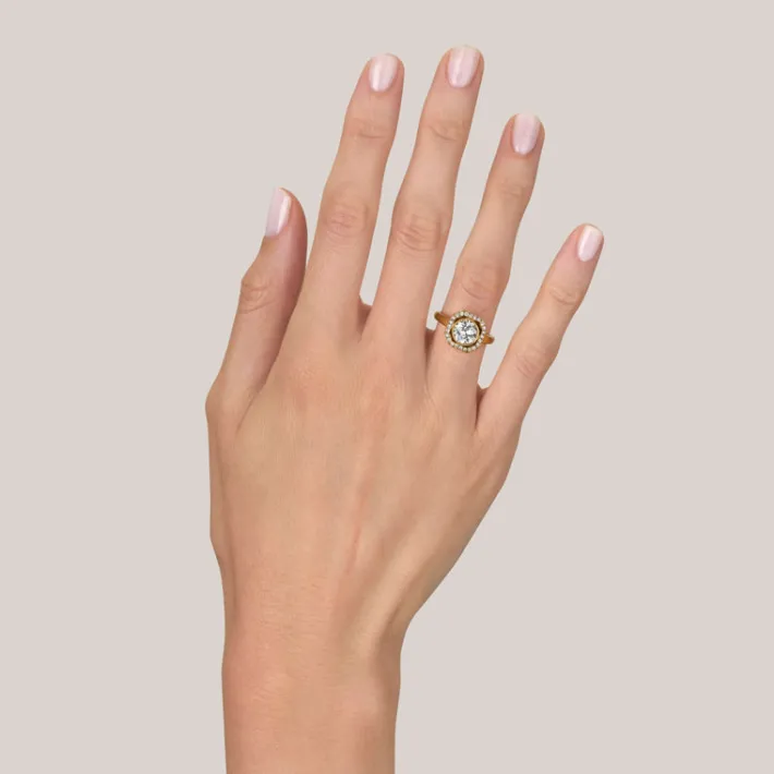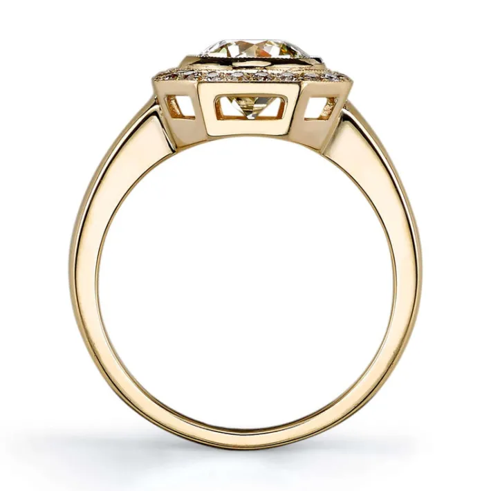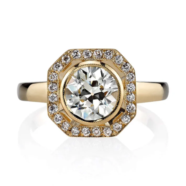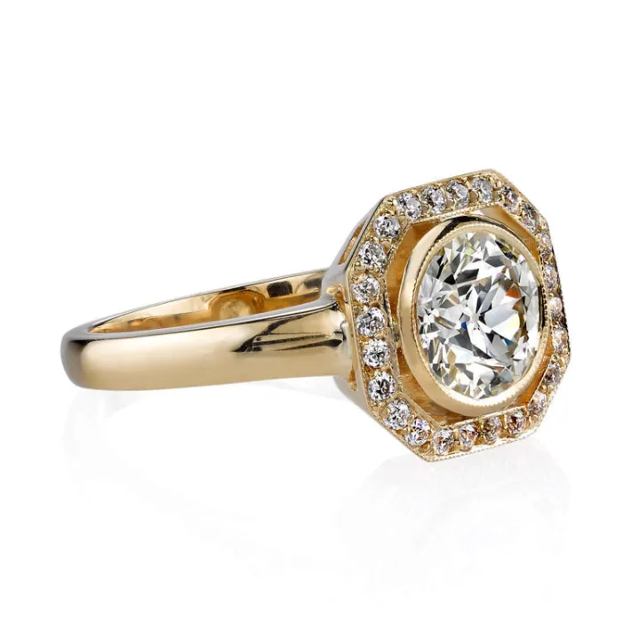 1.33ct L/VS1 GIA certified old European cut diamond with 0.19ctw old European cut accent diamonds set in a handcrafted 18K yellow gold mounting.