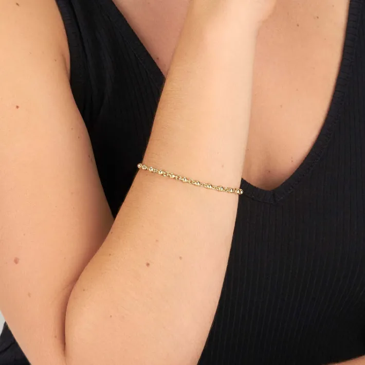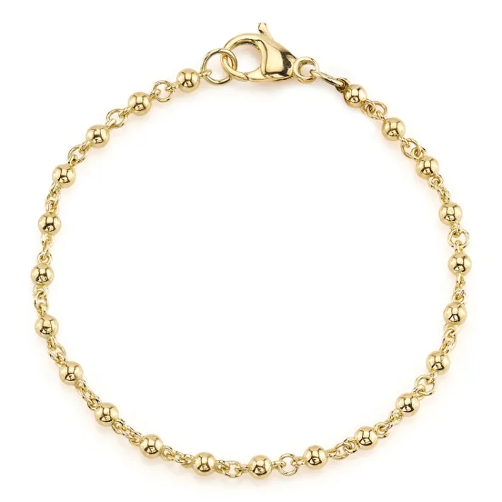 Handcrafted 18K yellow gold round ball bracelet. Bracelet measures 7.5″.Please inquire for additional customization.