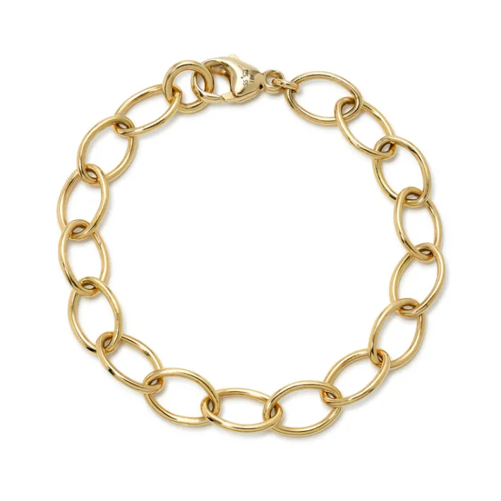 Handcrafted 18K yellow gold oval link bracelet. Bracelet measures 7.5″.Charms sold separately.Please inquire for additio…