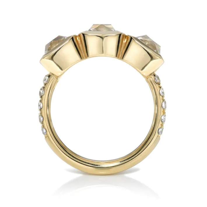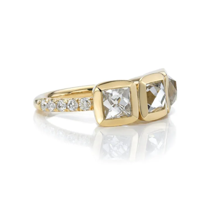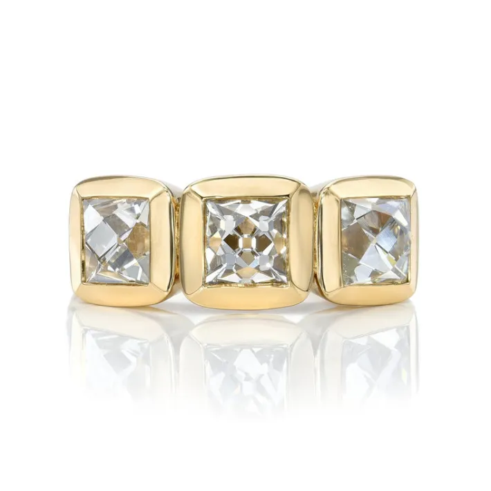2.76ctw F-G/VS2-SI1 GIA certified French cut diamonds with 0.31ctw old European cut accent diamonds set in a handcrafted 18K yellow gold mounting.