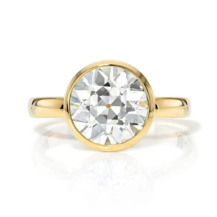 2.48ct L/SI1 GIA certified old European cut diamond bezel set in a handcrafted 18K yellow gold mounting.