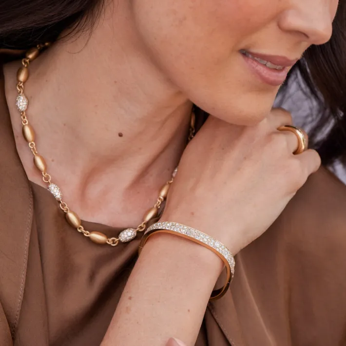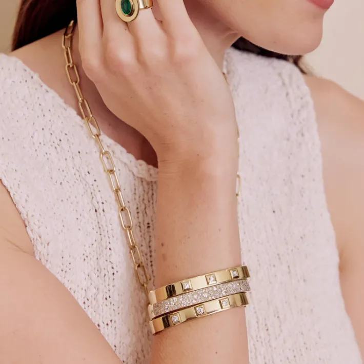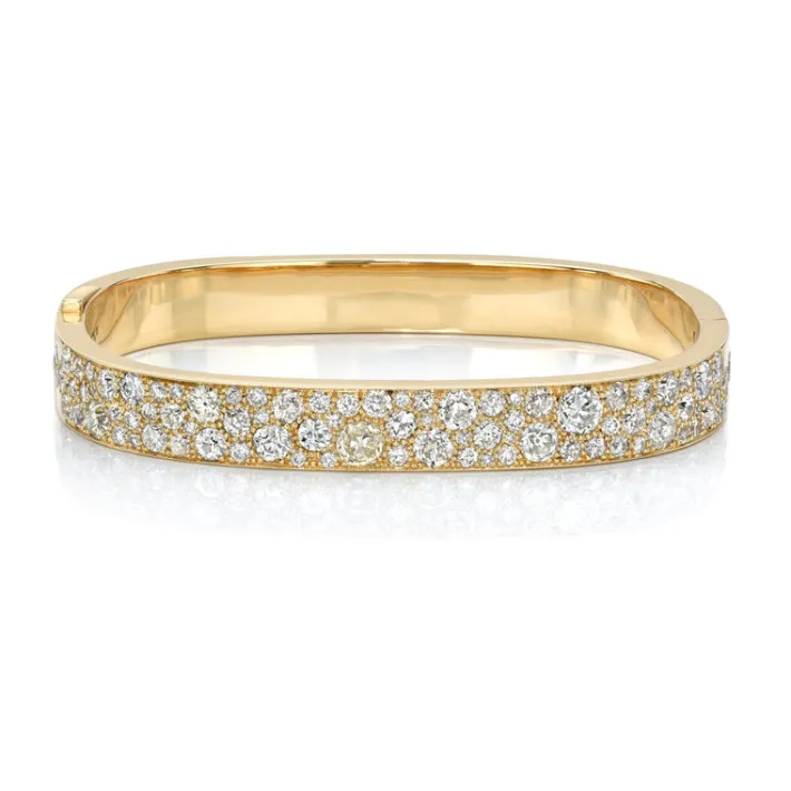 5.95ctw various old and round brilliant cut diamonds cobblestone set in a handcrafted 18K yellow gold bangle bracelet.