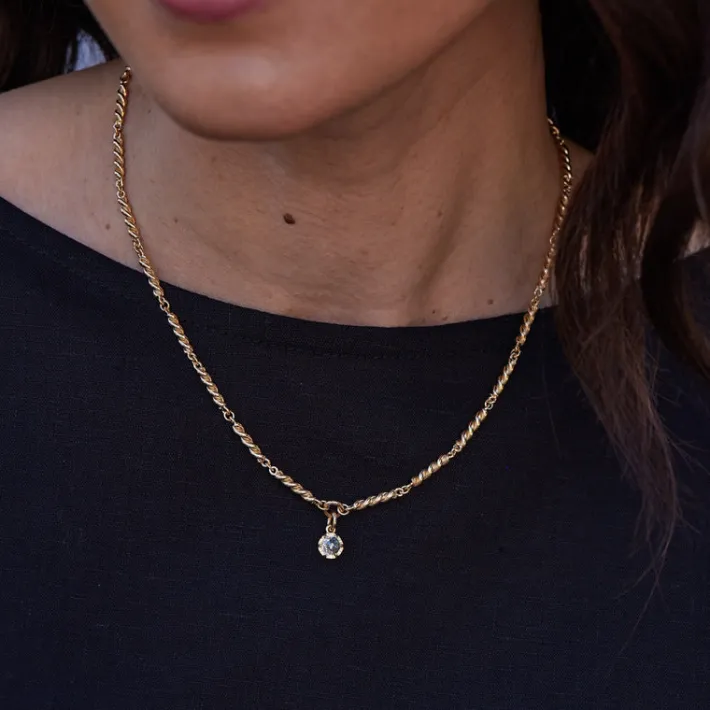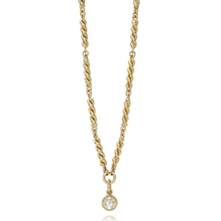 0.35ct F-G/VS rose cut diamond prong set on our handcrafted 18K yellow gold twisted link Lara necklace