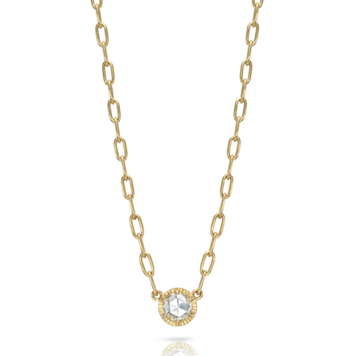 0.72ct F-G/VS rose cut diamond prong set on our handcrafted 18K yellow gold Bond chain.