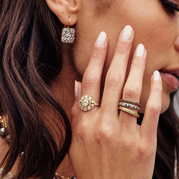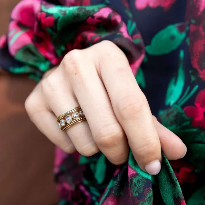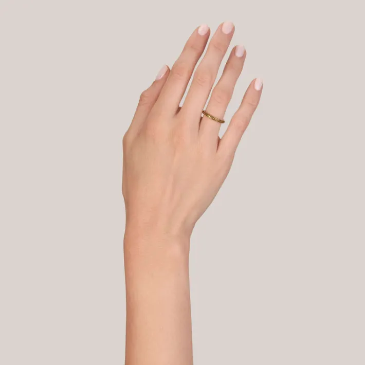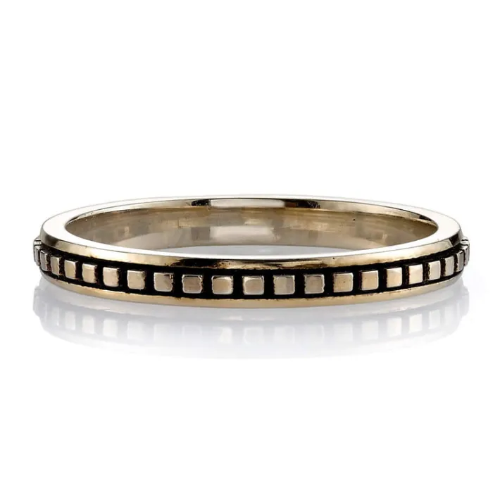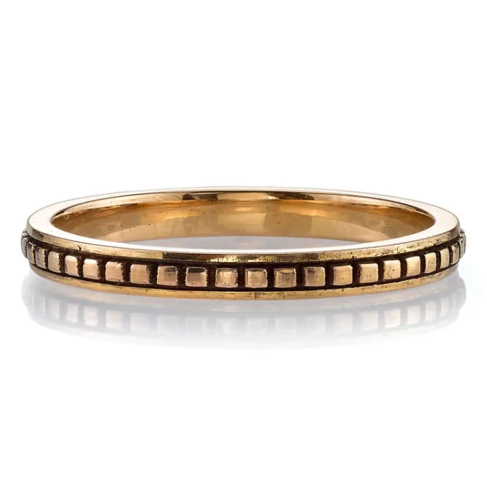 Handcrafted oxidized 18K gold square beaded band.