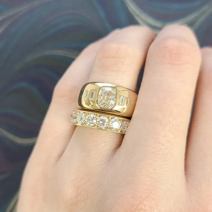 Approximately 3.30-3.80ctw G-H/VS old European cut diamonds pavé set in a handcrafted eternity band.