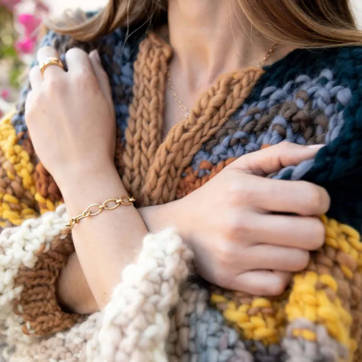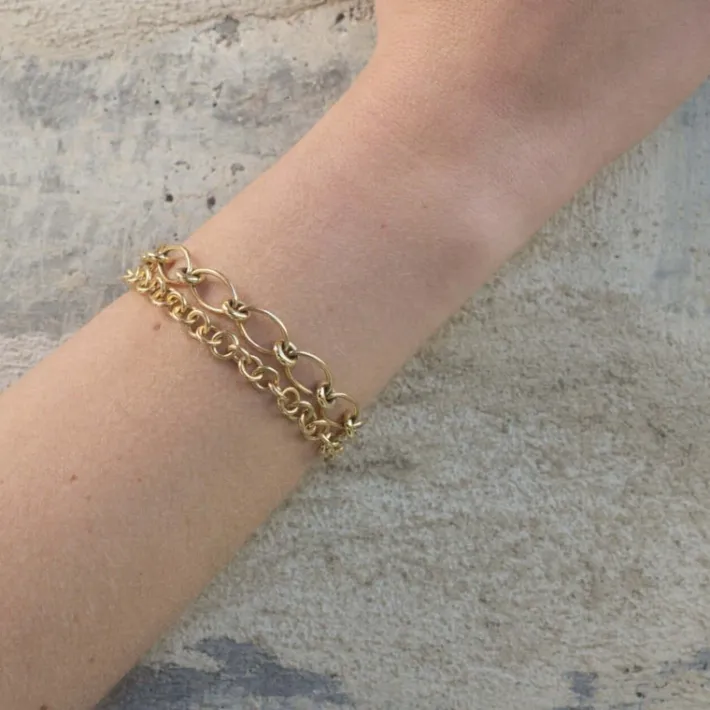 Handcrafted 18K yellow gold oval and round link bracelet.