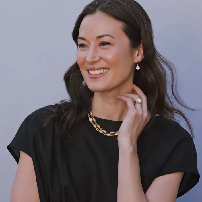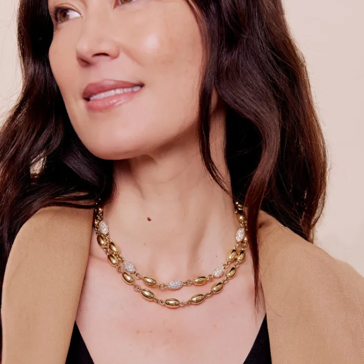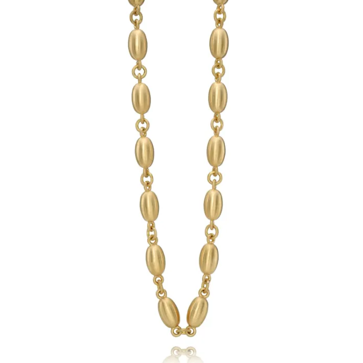Handcrafted 18K yellow gold large oval bead necklace.Available in a high polish or satin finish. Necklace measures 17.25…