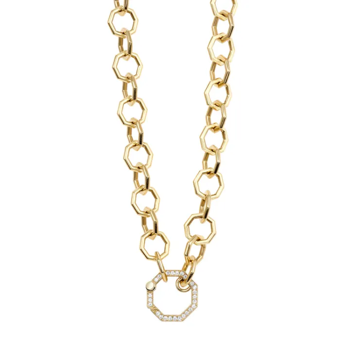 Approximately 0.25ctw G-H/VS old European cut diamonds pavé set on a handcrafted 18K yellow gold octagonal link necklac…