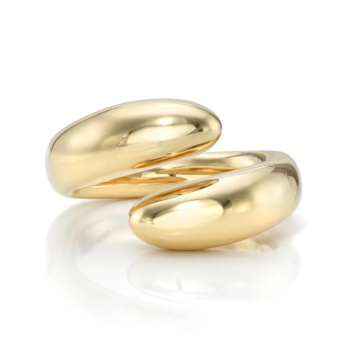 Handcrafted 18K yellow gold bypass ring.