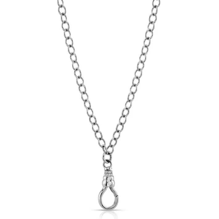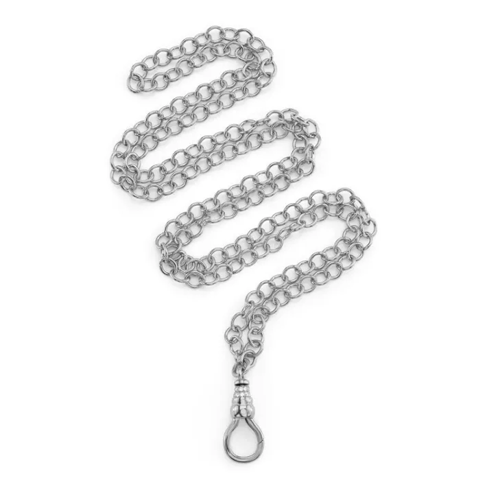 Handcrafted platinum link chain featuring a fob clasp with approximately 0.20ctw G-H/VS pavé set old European cut accent diamonds.