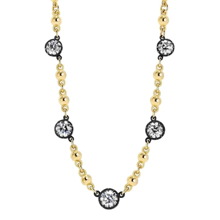 2.26ctw G-J/VS1-VS2 GIA certified old European cut diamonds prong set in oxidized sterling silver mountings on our handcrafted 18K yellow gold Rosary chain.