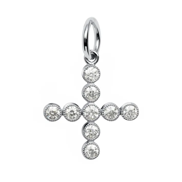 Approximately 0.80ctw G-H/VS-SI old European cut diamonds in a handcrafted platinum bezel set cross charm. Price does n…