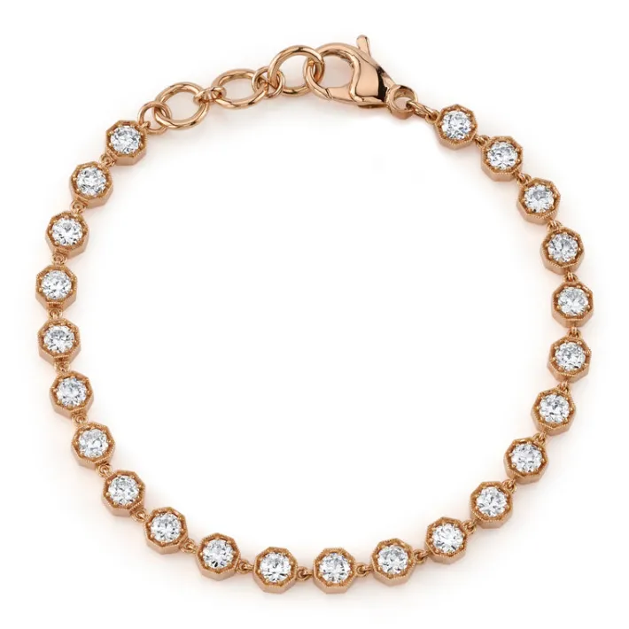3.94ctw G-H/VS-SI old European cut diamonds prong set on a handcrafted 18K rose gold tennis bracelet.
