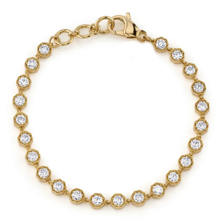 3.40ctw I-J/VS-SI old European cut diamonds set in a handcrafted 18K yellow gold diamond tennis bracelet.
