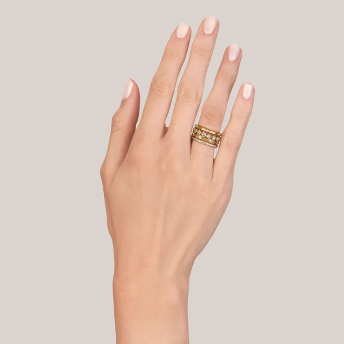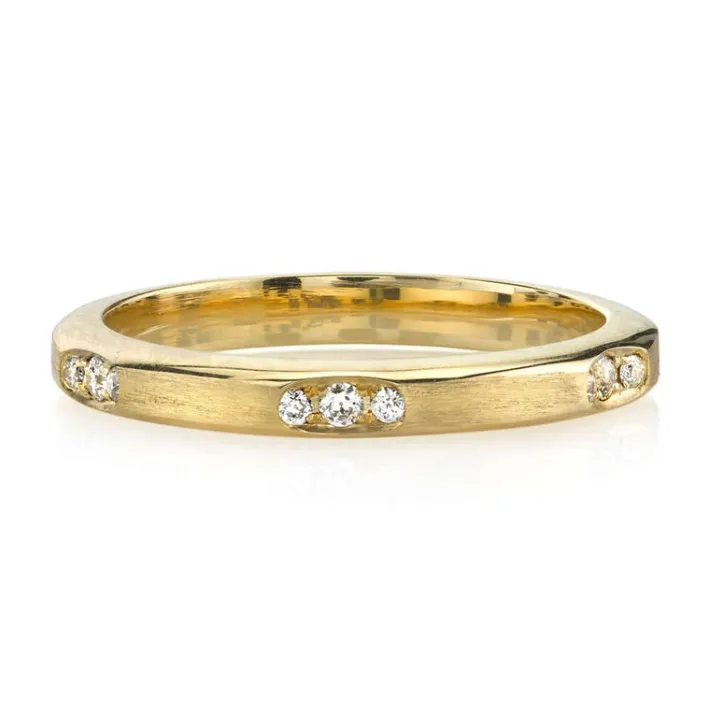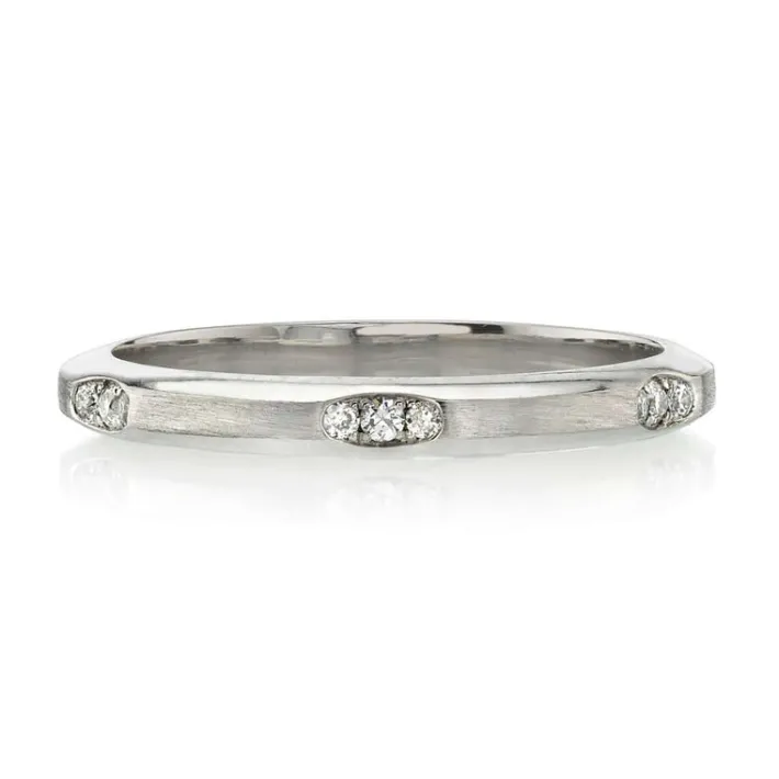 Approximately 0.15ctw G-H/VS old European cut diamonds set in a handcrafted, satin finish eternity band.