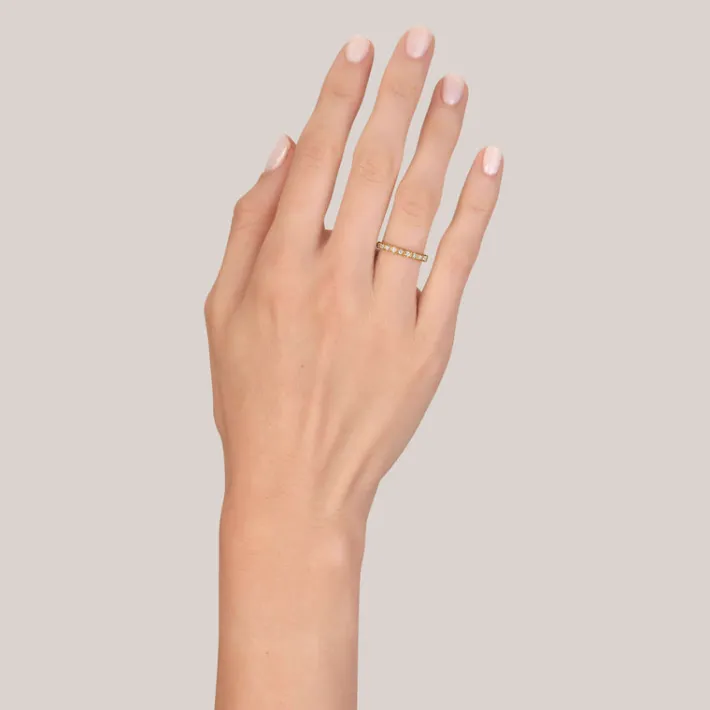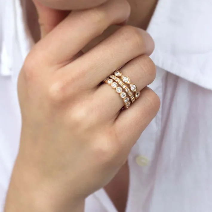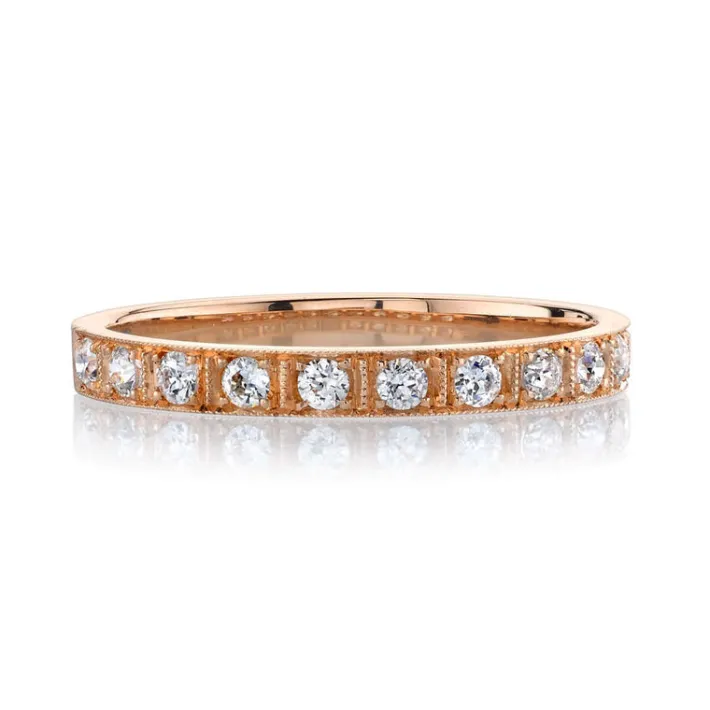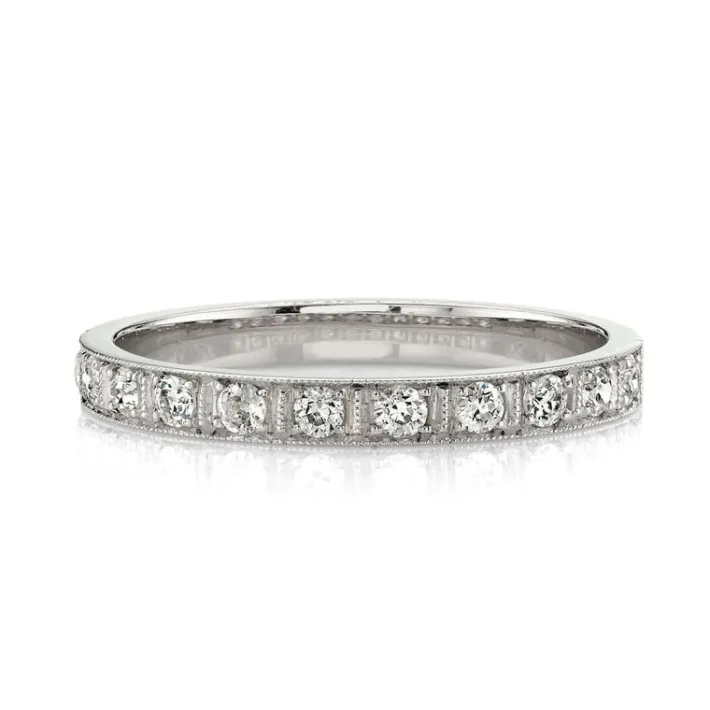 Approximately 0.20ctw G-H/VS old European cut diamonds set in a handcrafted half eternity band.