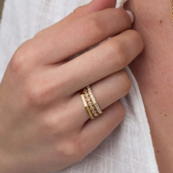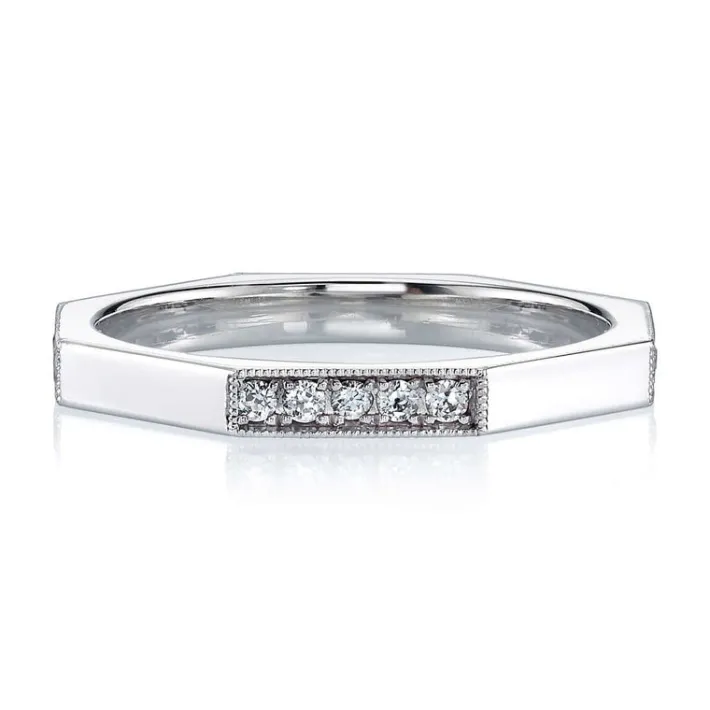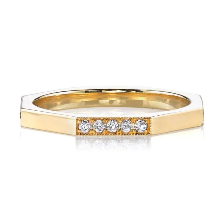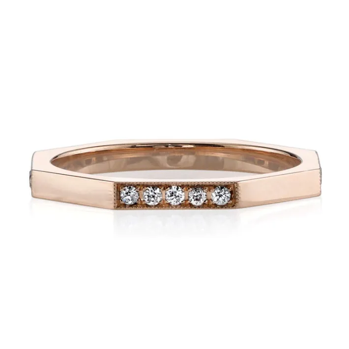 Approximately 0.20ctw old European cut diamonds pavé set in a handcrafted sectional octagonal band.