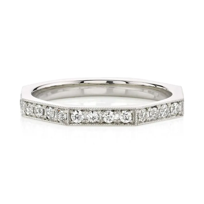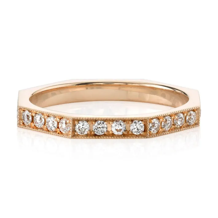 Approximately 0.65ctw old European cut diamonds pavé set in a handcrafted octagonal sectional band