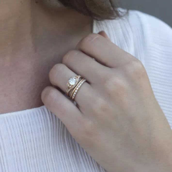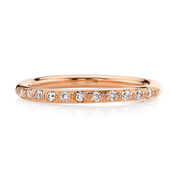 Approximately 0.10ctw old European cut diamonds pavé set in a handcrafted half eternity band.