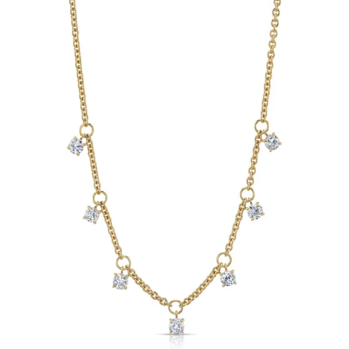 Approximately 2.75ctw I-K/VS2-SI2 old European cut diamonds prong set on a handcrafted 18K yellow gold necklaceNecklace …