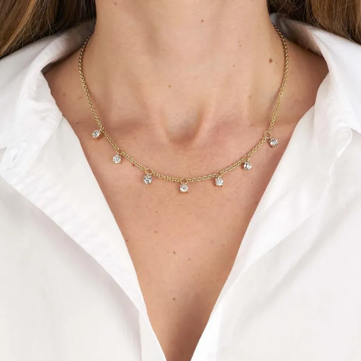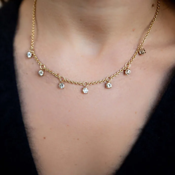 Approximately 2.75ctw I-K/VS2-SI2 old European cut diamonds prong set on a handcrafted 18K yellow gold necklace