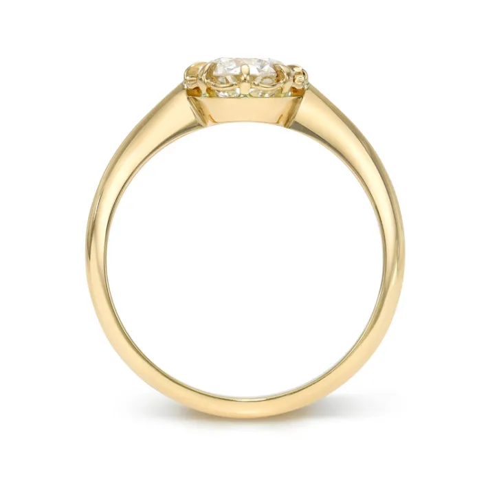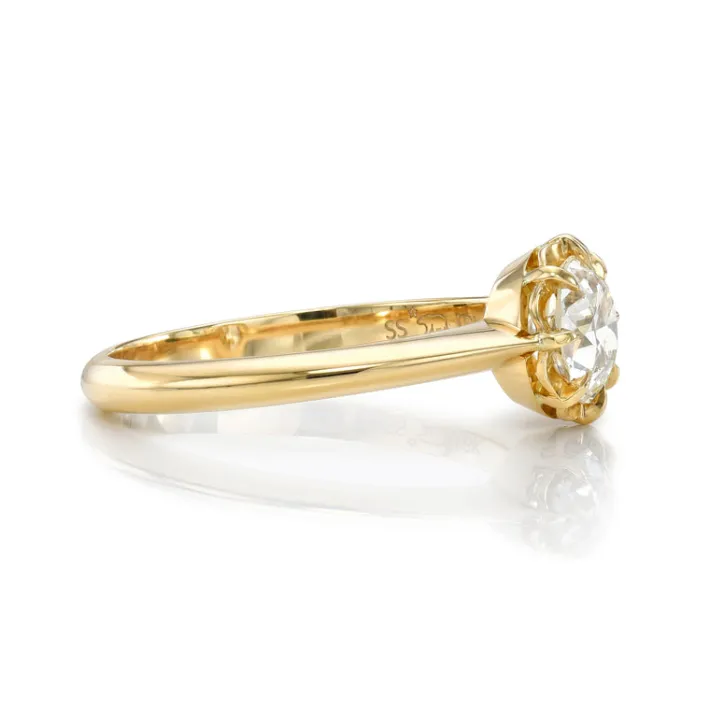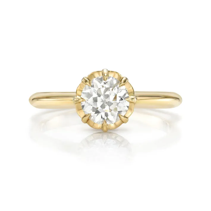 0.80ct J/I1 GIA certified old European cut diamond prong set in a handcrafted 18K yellow gold mounting.