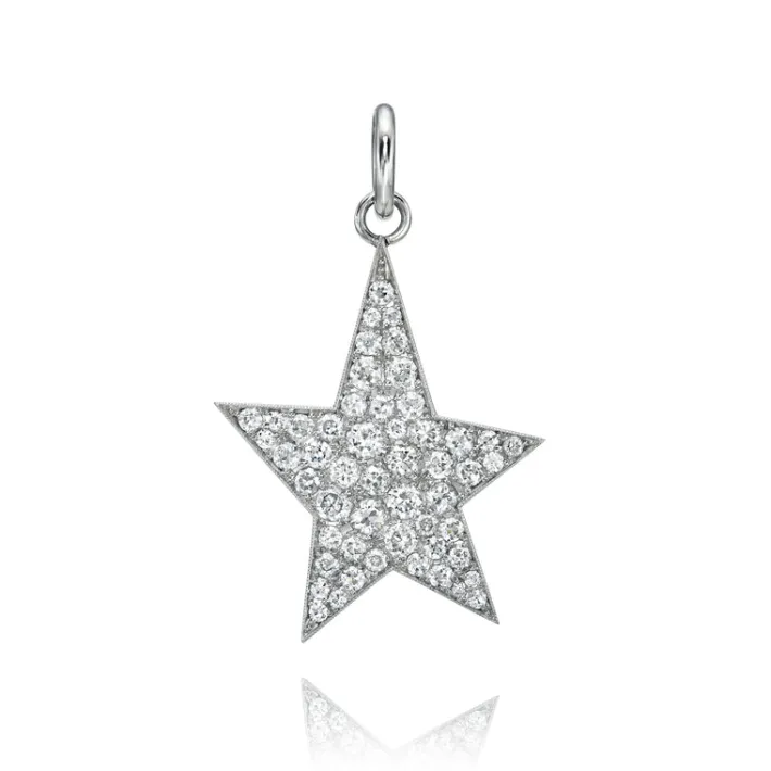 Approximately 3.00ctw varying old cut and round brilliant cut diamonds cobblestone set in a handcrafted platinum star-shaped pendant.