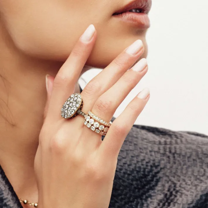 Approximately 3.00-3.30ctw old European cut diamonds bezel set in a handcrafted eternity band.