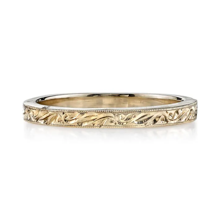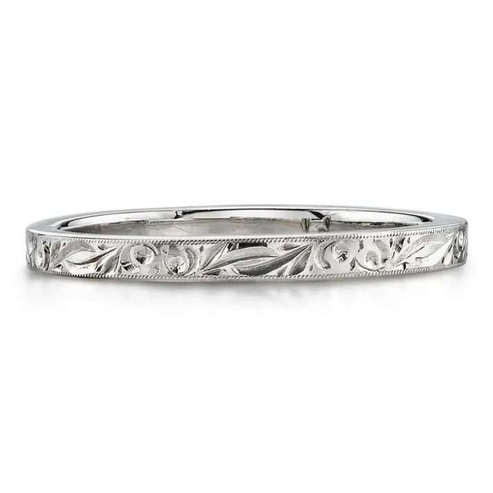 2mm handcrafted engraved band. Please inquire for additional customization.