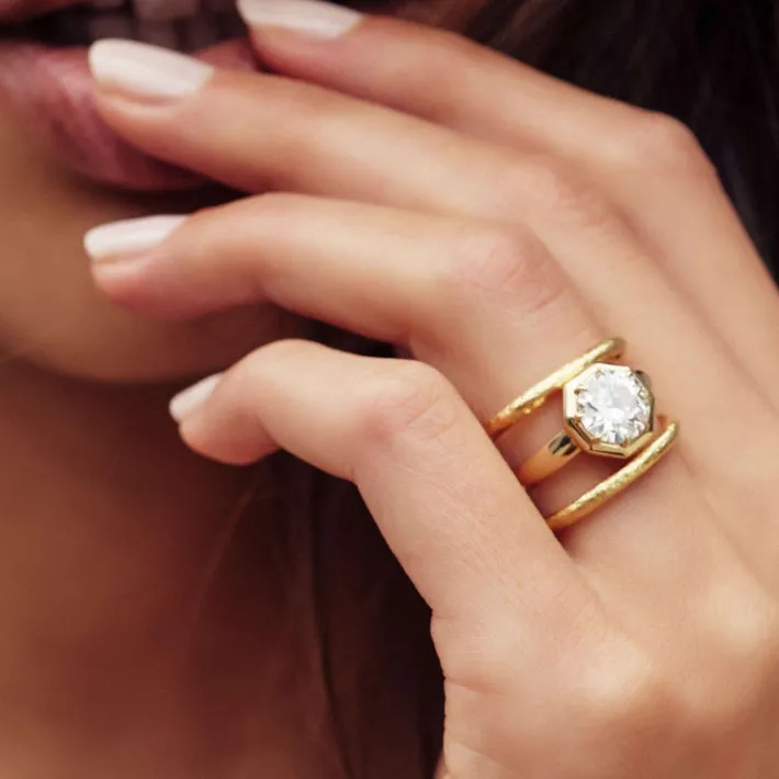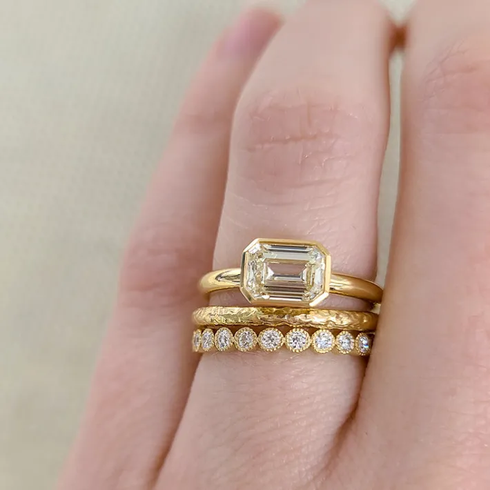 2mm handcrafted hammer finished 22K yellow gold band. Please inquire for additional customization.