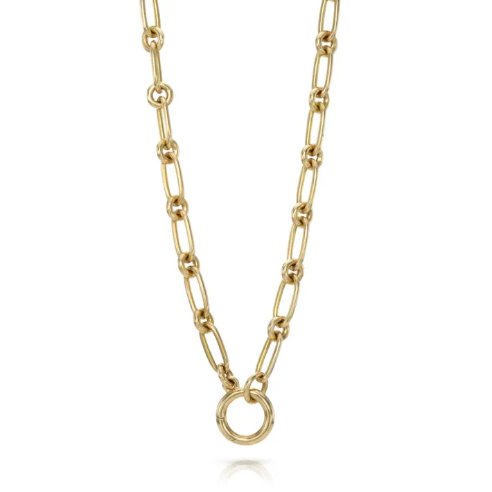 Our handcrafted 18K yellow gold Lo chain featuring a pendant enhancer